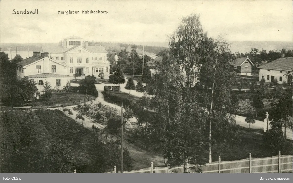 Vykort med motiv över Kubikenborgs herrgård i Sundsvall.