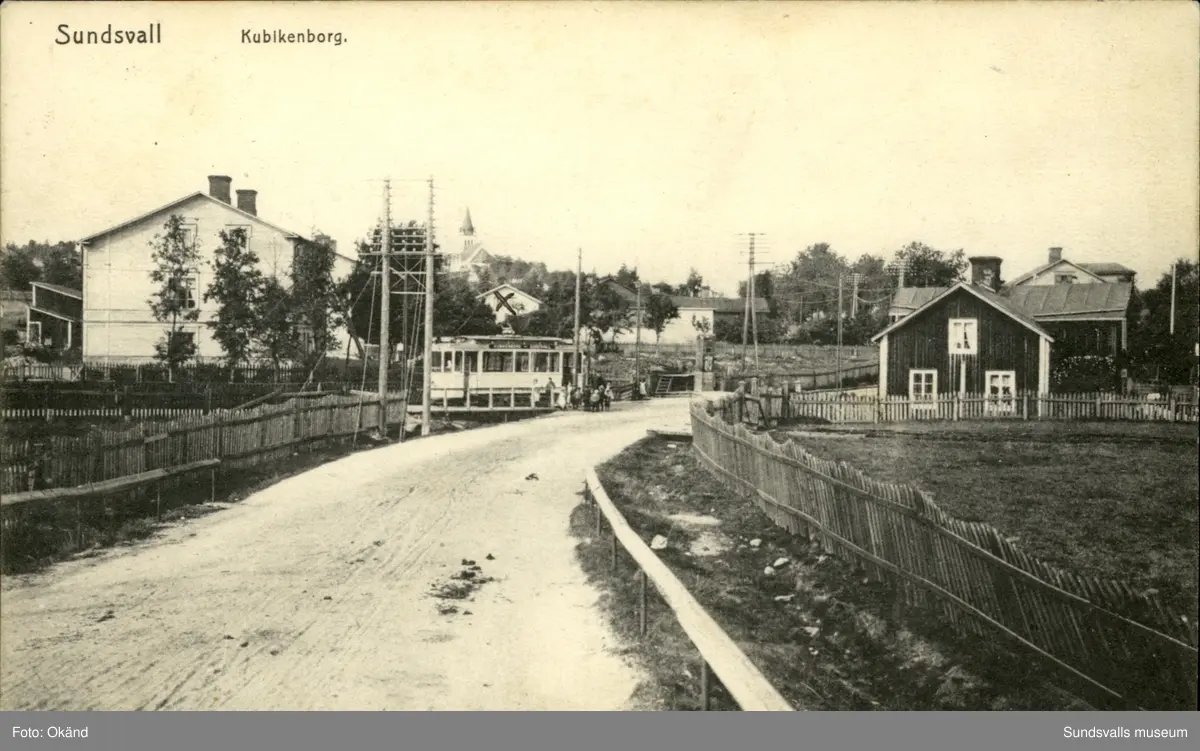 Vykort med motiv över ett parti av Kubikenborg i Sundsvall.