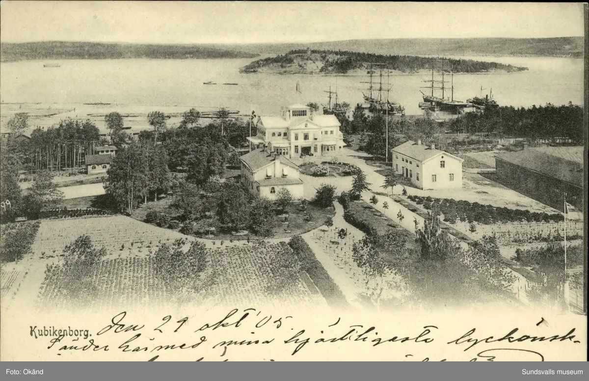 Vykort med motiv över Kubikenborgs herrgård i Sundsvall.
