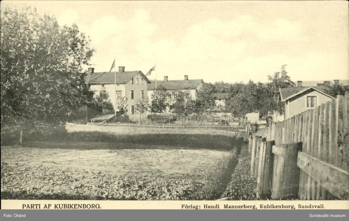 Vykort med motiv över ett parti av Kubikenborg i Sundsvall.