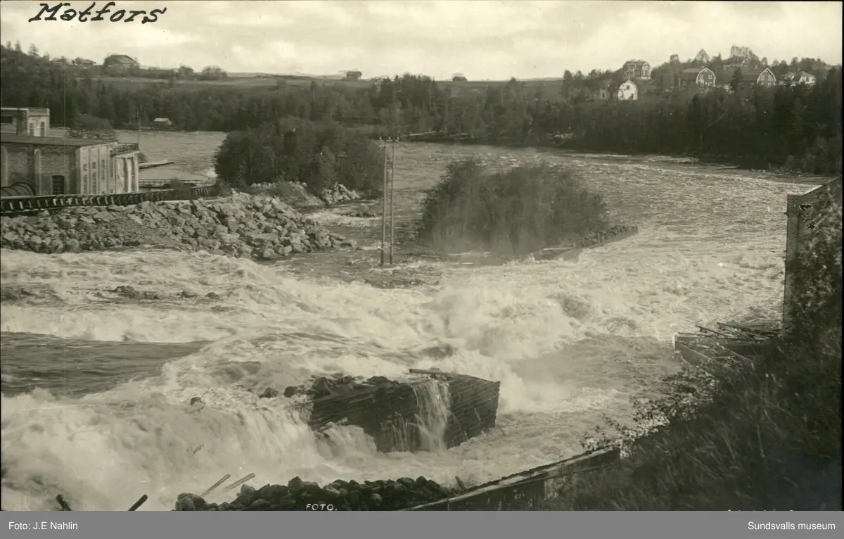 Vykort med motiv över Ljungan vid kraftverket i Matfors.