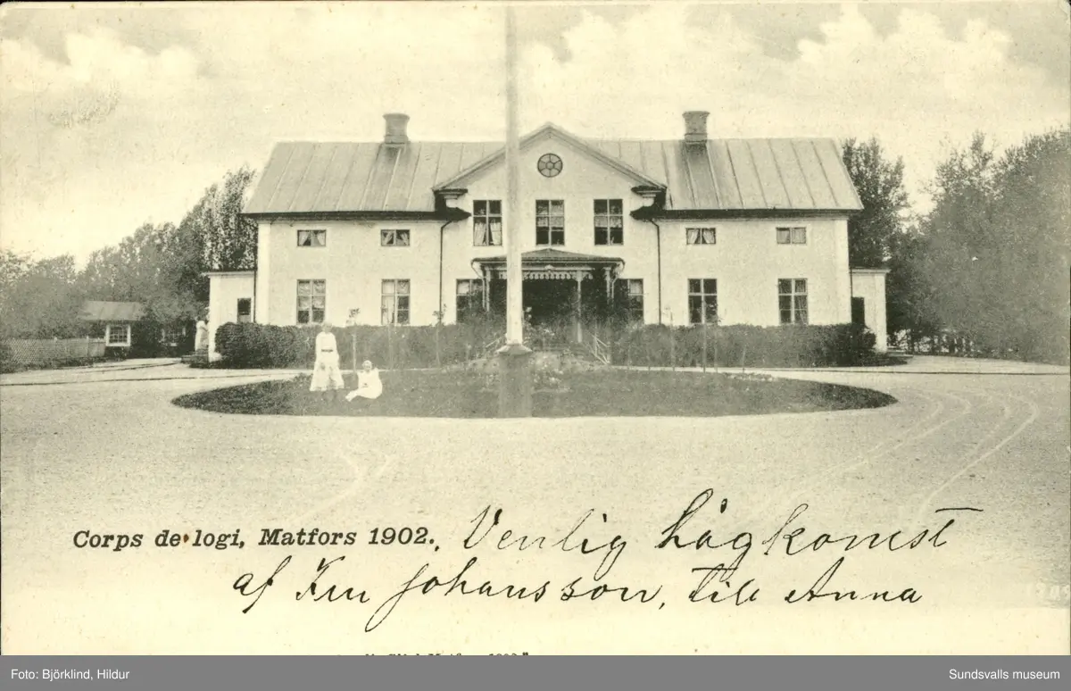 Vykort med motiv över Matfors herrgård före ombyggnaden 1912-1913.