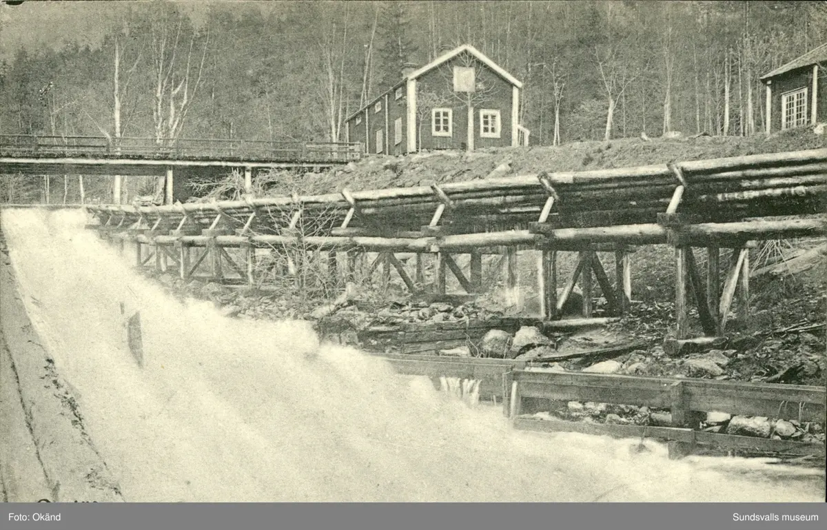 Vykort med motiv över Oxsjöån som rinner förbi Sillresåg i Liden.