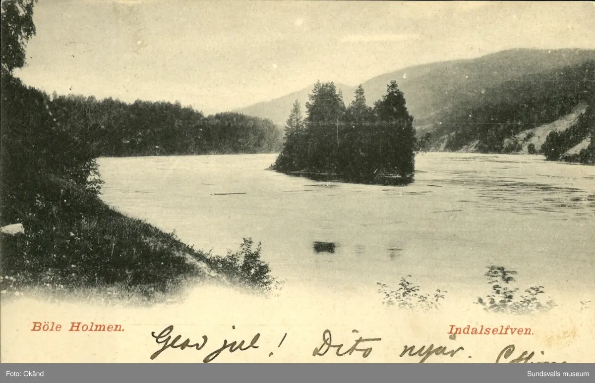 Vykort med motiv över Böle holmen vid Indalsälven.
