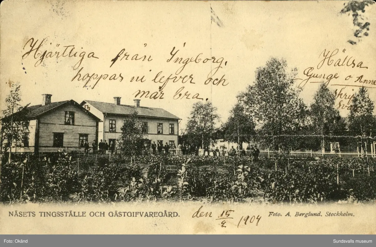Vykort med motiv över Näsets tingställe och gästgivargård.