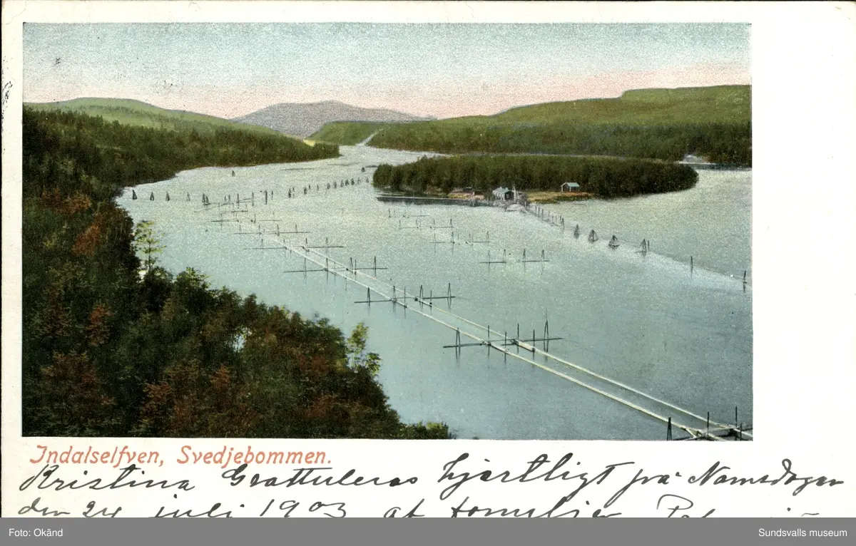 Vykort med motiv över Svedjebommen i Indalsälven.