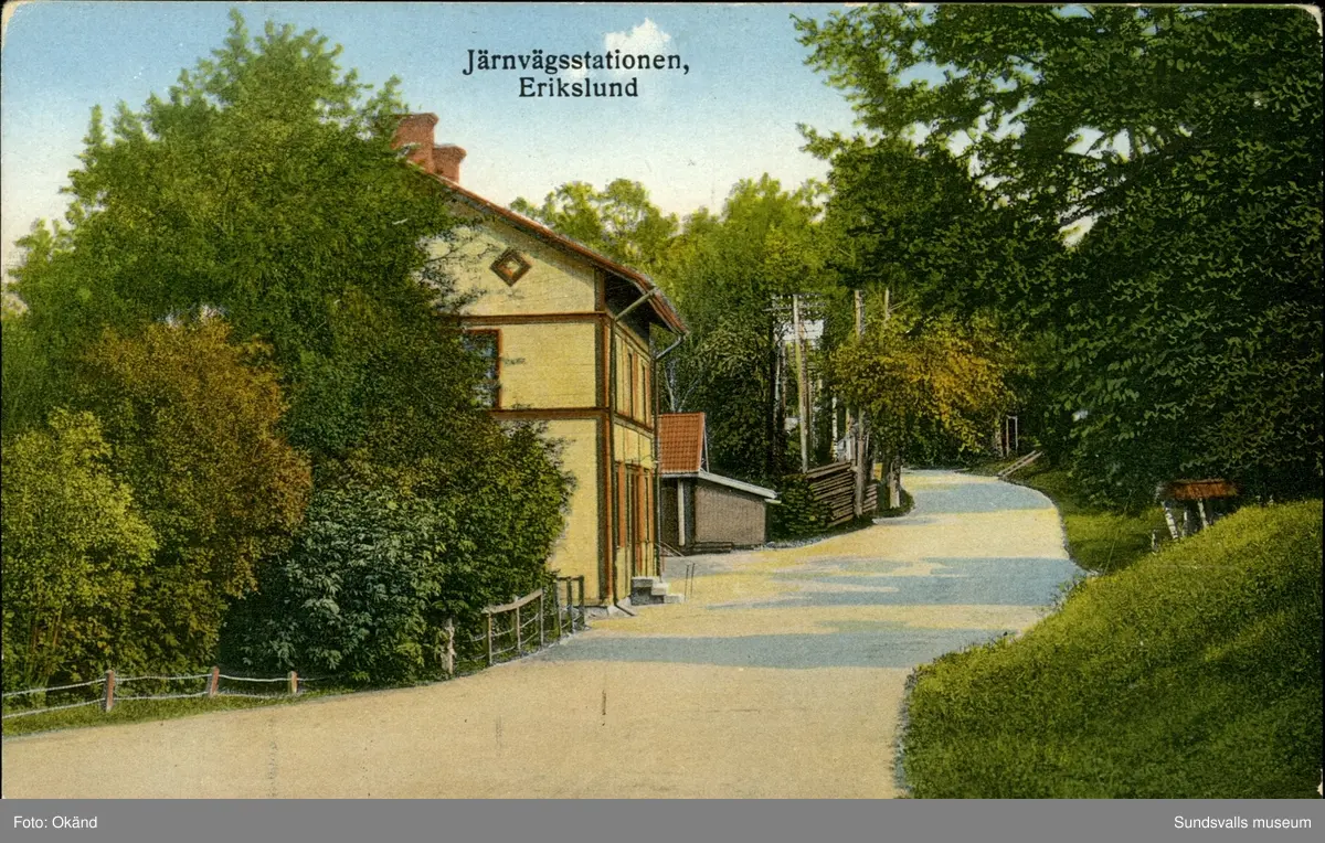 Vykort med motiv över järnvägsstationen i Erikslund.