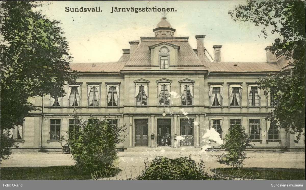 Vykort med motiv över järnvägsstationen i Sundsvall.