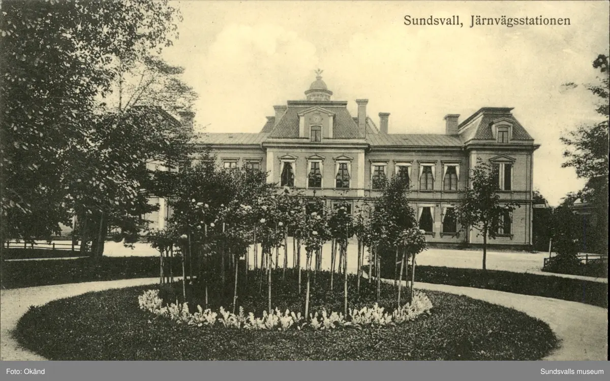 Vykort med motiv över järnvägsstationen i Sundsvall.