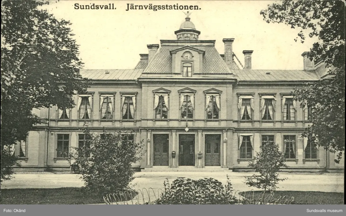 Vykort med motiv över järnvägsstationen i Sundsvall.