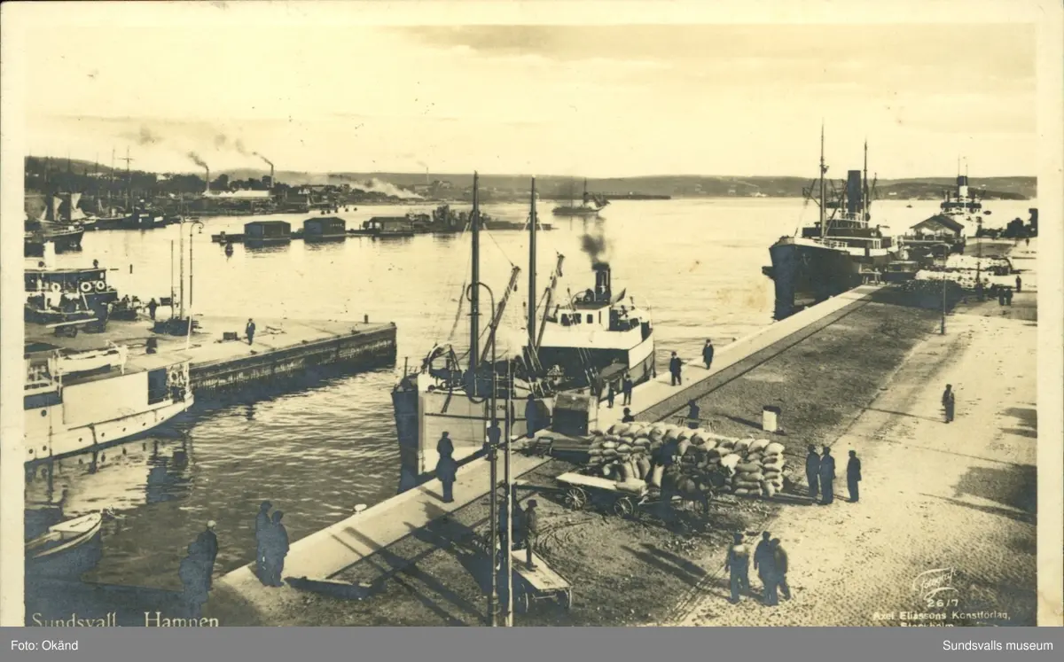 Vykort över hamnen i Sundsvall.