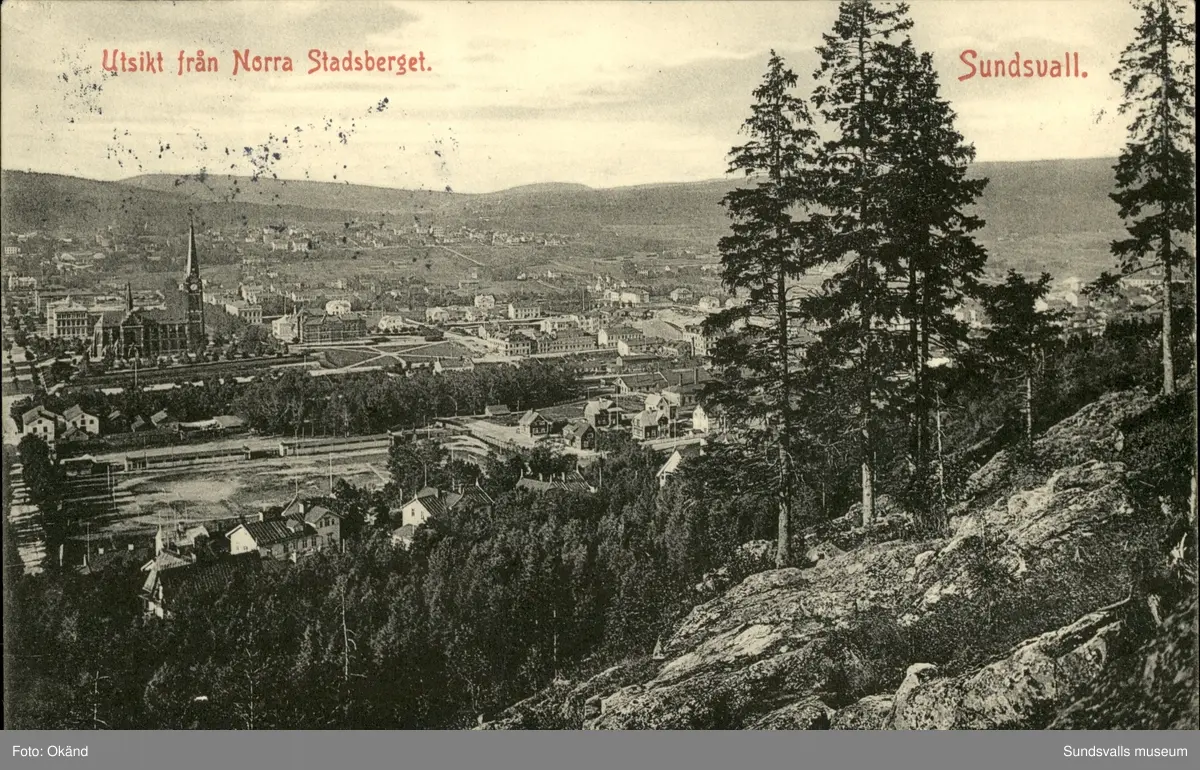 Vykort med motiv över Sundsvall från Norra stadsberget.