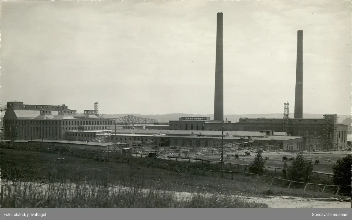 Vykort med motiv över byggnationen av Östrandsfabriken.