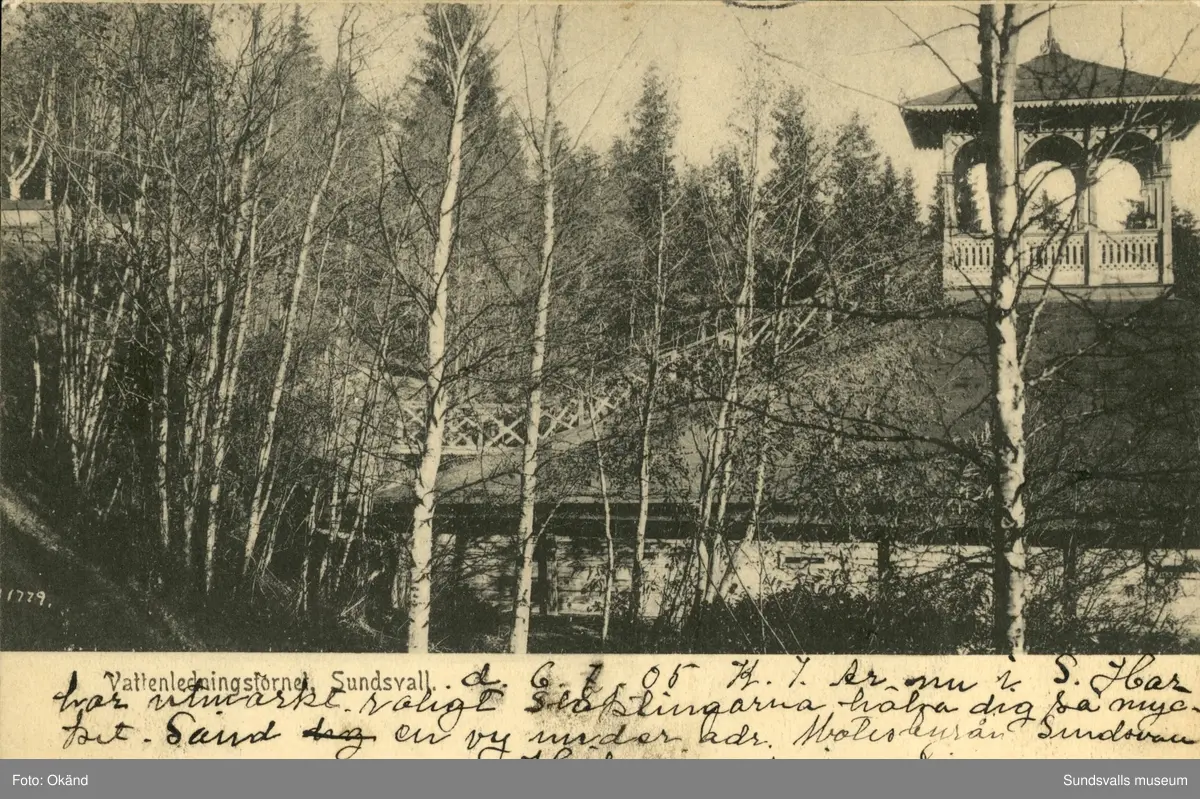 Vykort med motiv över vattenledningstornet i Sundsvall.