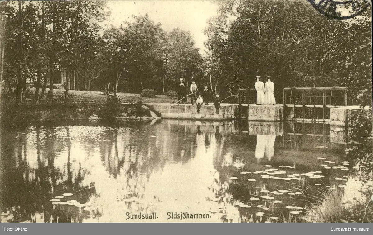 Vykort med motiv av Sidsjöhamnen i Sundsvall.