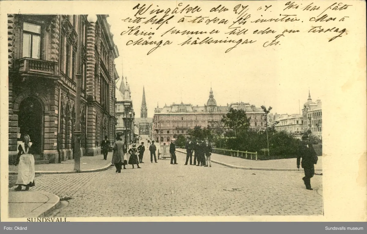 Vykort med motiv över Kyrkogatan i Sundsvall.