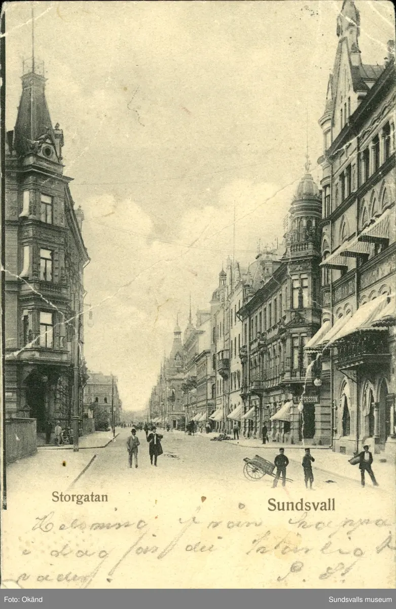 Vykort med motiv över Storgatan i Sundsvall.