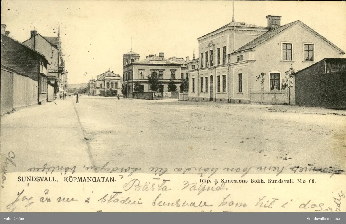 Vykort med motiv över Köpmangatan i Sundsvall.