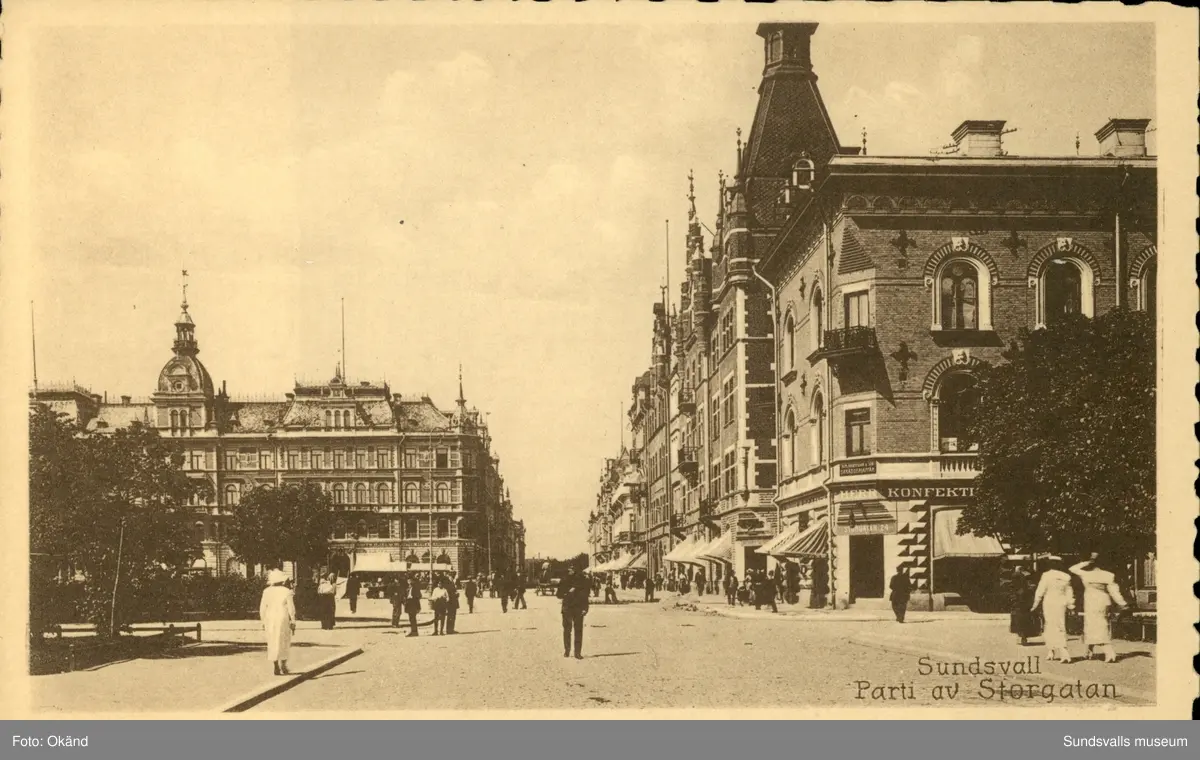 Titel: Vykort med motiv över Storgatan i Sundsvall.