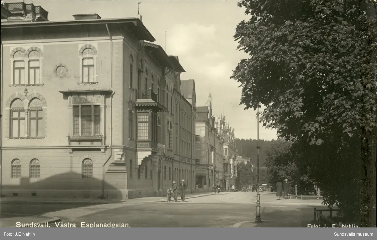 Vykort med motiv över västra Esplanadgatan i Sundsvall.