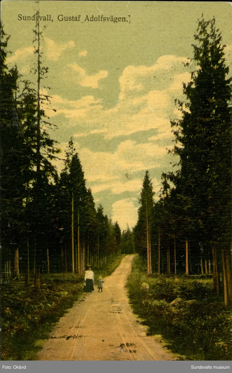 Vykort med motiv över Gustaf- Adolfsvägen i Sundsvall.