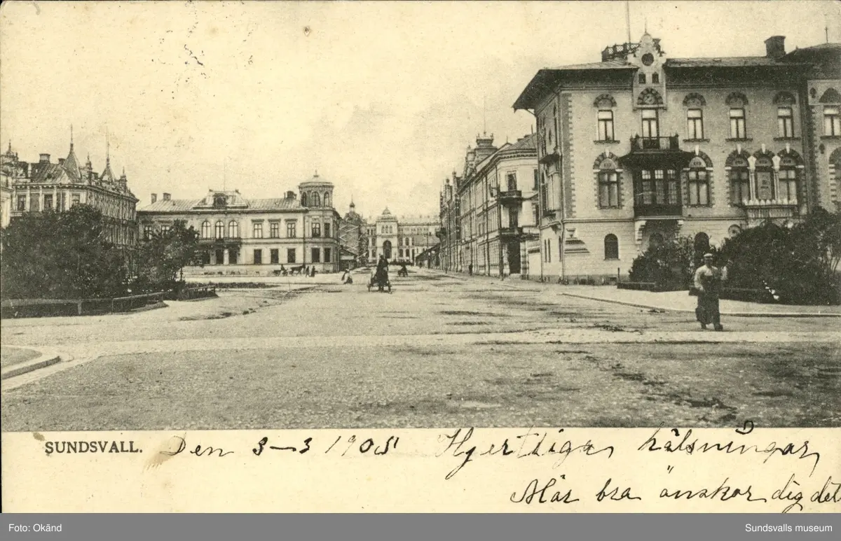 Vykort med motiv över Köpmangatan i Sundsvall.