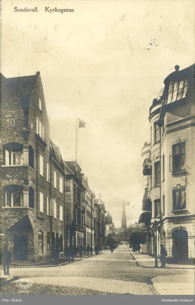 Vykort med motiv över Kyrkogatan i Sundsvall.