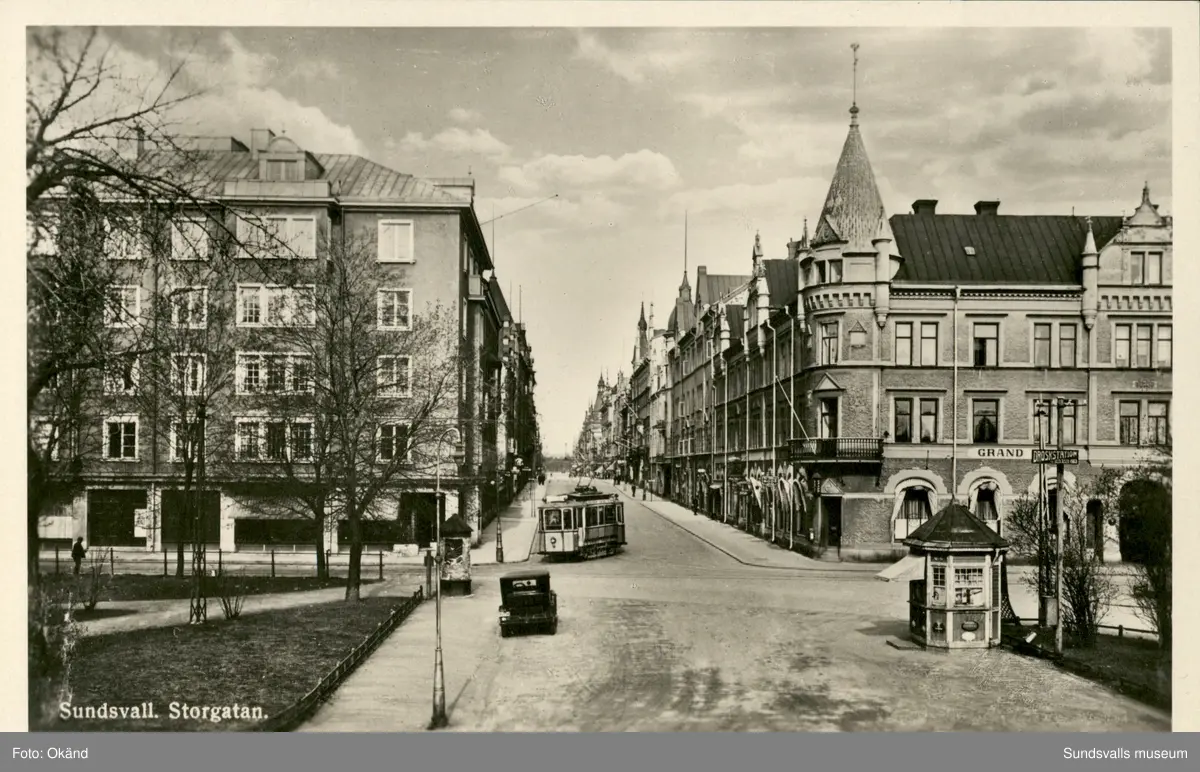 Vykort med motiv över Storgatan i Sundsvall.