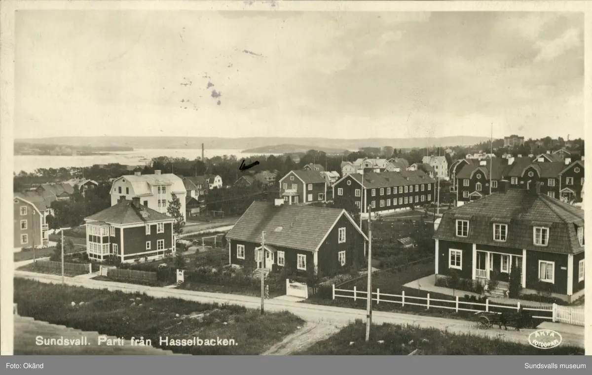 Vykort med motiv över parti av hasselbacken i Sundsvall.