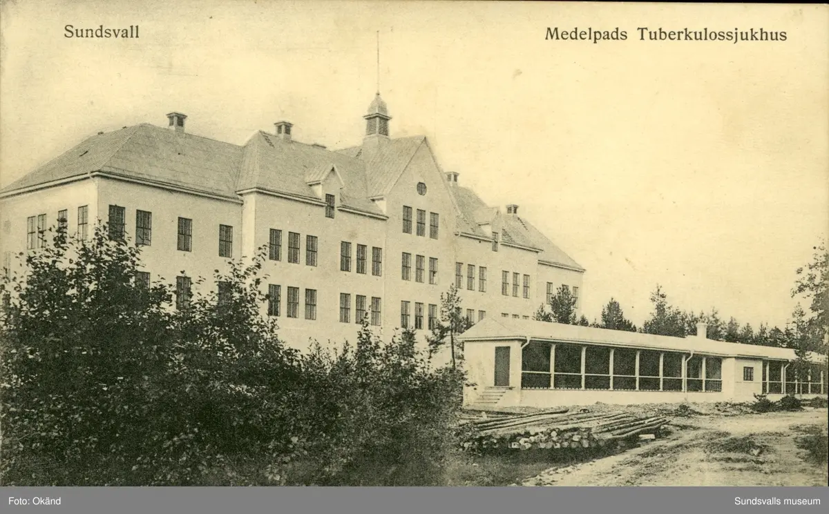 Vykort med motiv över Medelpads Tuberkulossjukhus i Sundsvall.
