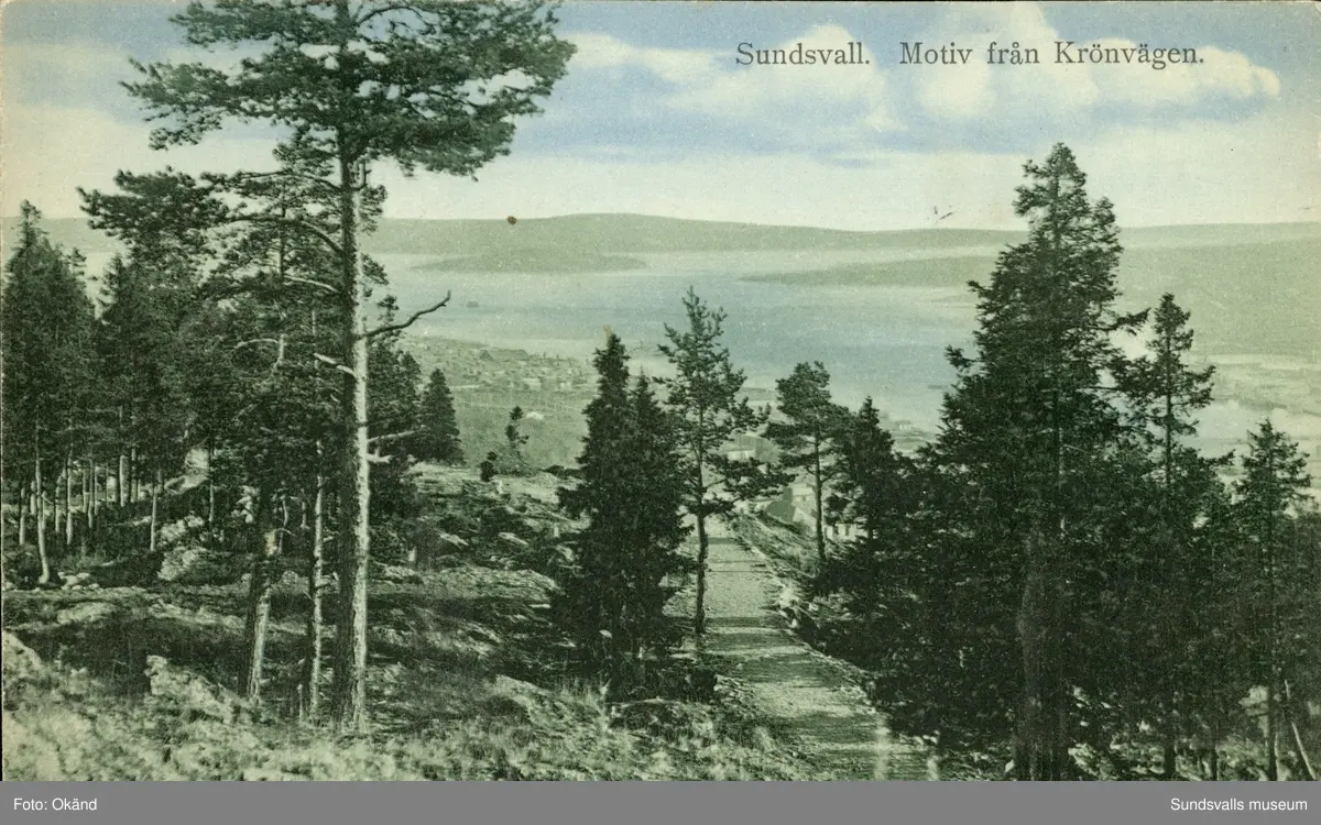 Vykort med motiv över Sundsvalls inlopp från Krönvägen.