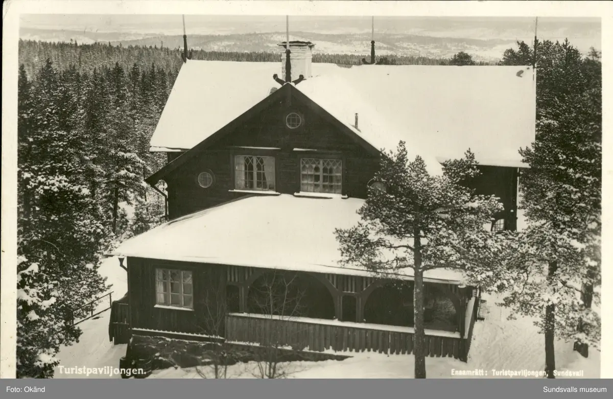 Vykort med motiv över Turistpaviljongen i Sundsvall.