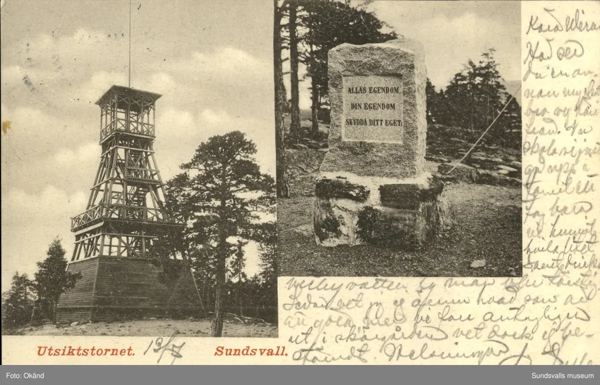 Vykort med motiv över Utsiktstornet i Sundsvall.
