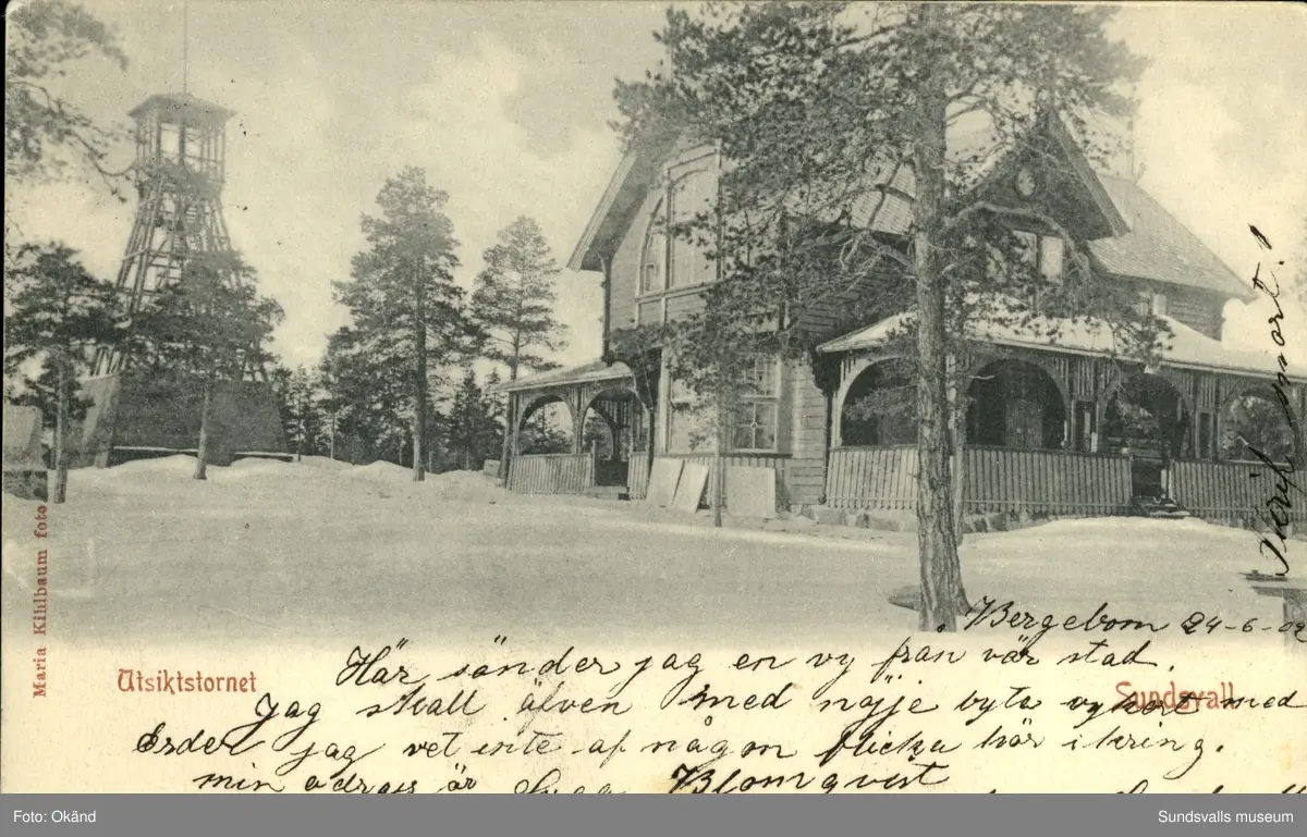 Vykort med motiv över Utsiktstornet i Sundsvall.