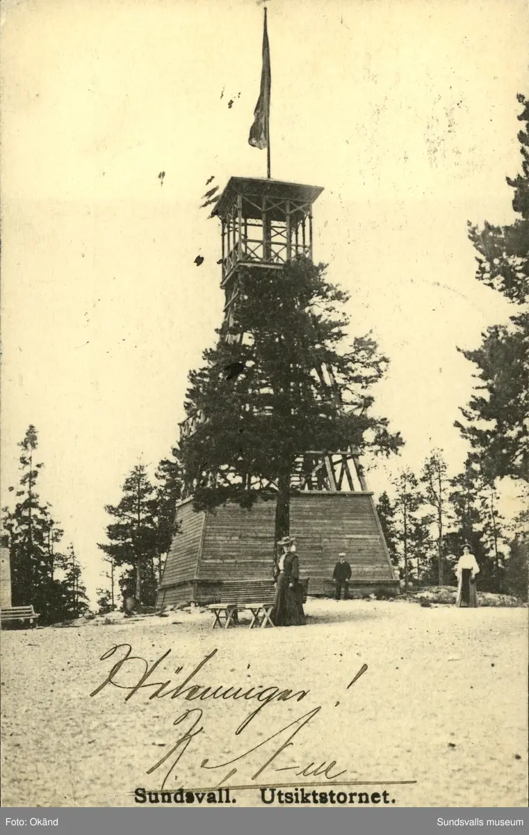 Vykort med motiv över Utsiktstornet i Sundsvall.