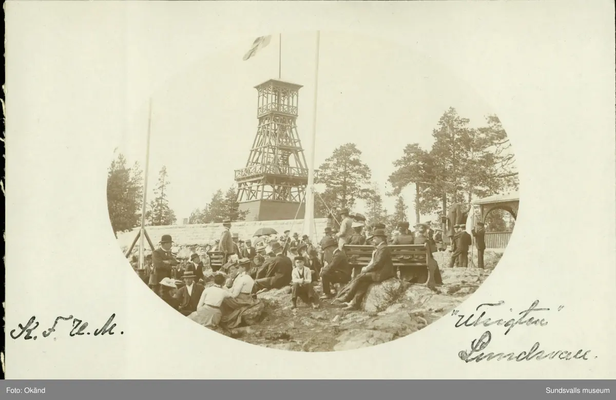 Vykort med motiv över Utsiktstornet på Norra Stadsberget i Sundsvall.
