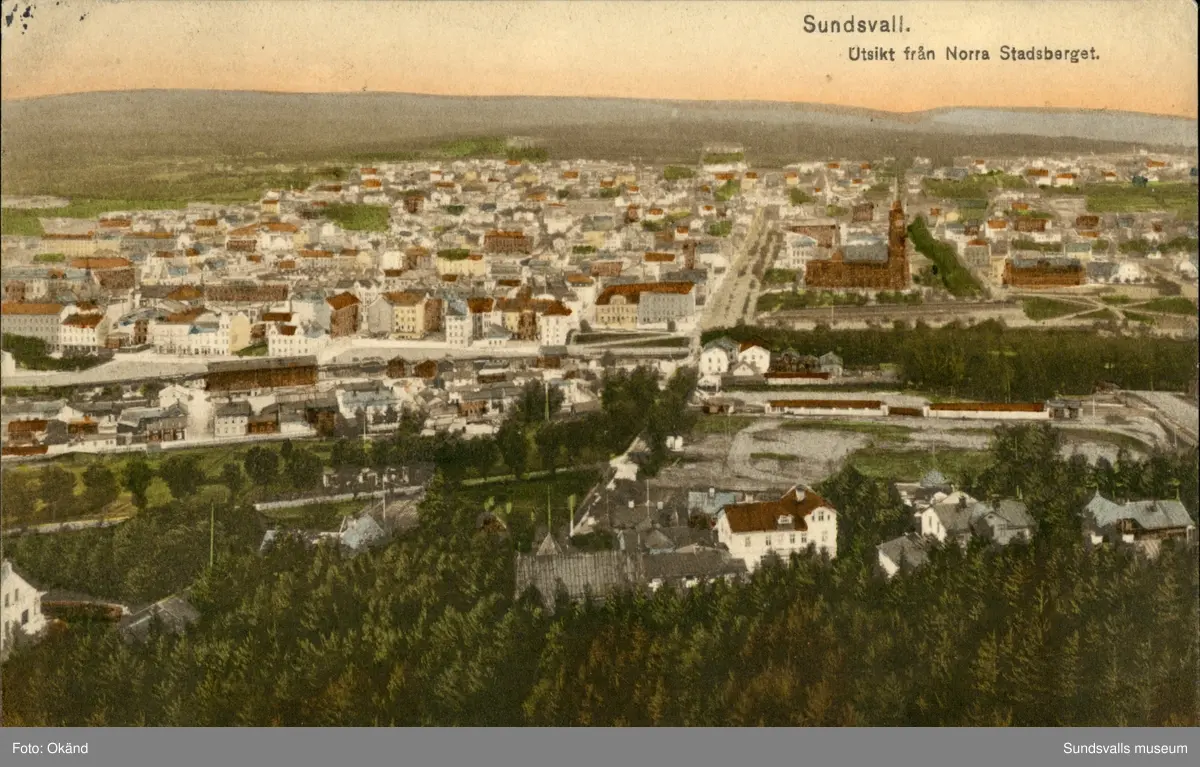 Vykort med motiv över Sundsvall sedd från Norra Stadsberget.