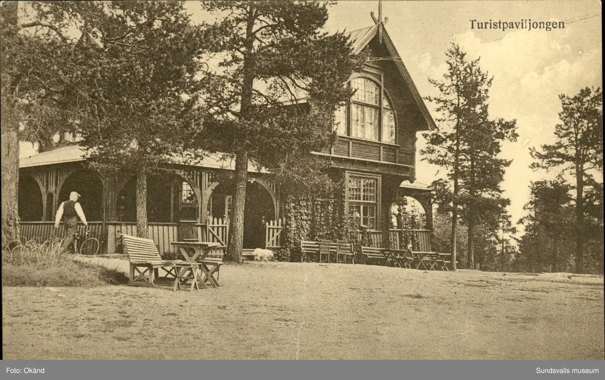 Vykort med motiv över Turistpaviljongen i Sundsvall.