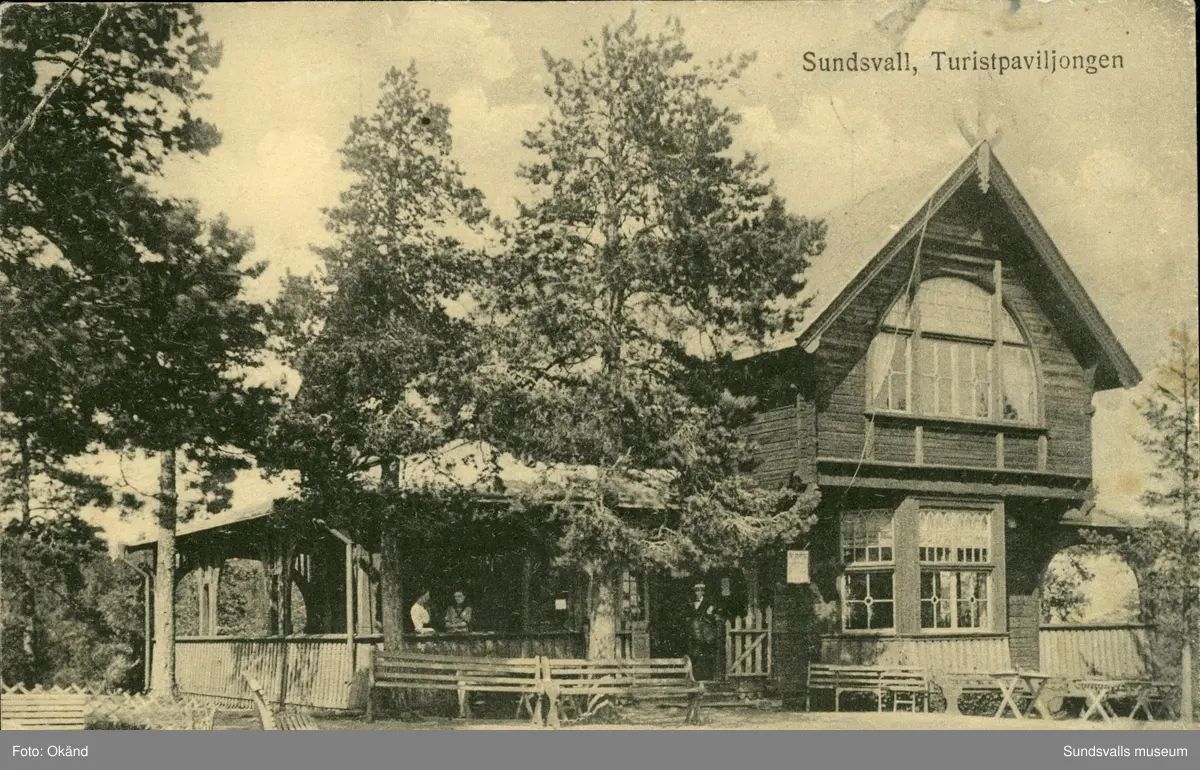 Vykort med motiv över Turistpaviljongen i Sundsvall.