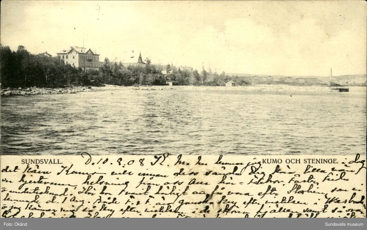 Vykort med motiv över Kumo och Steninge i Sundsvall.