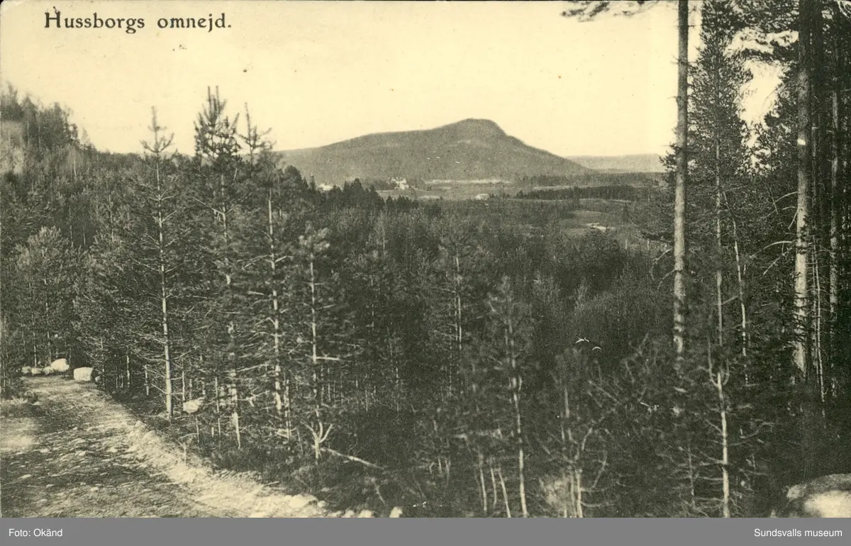 Vykort med motiv över Hussborgs omnejd.