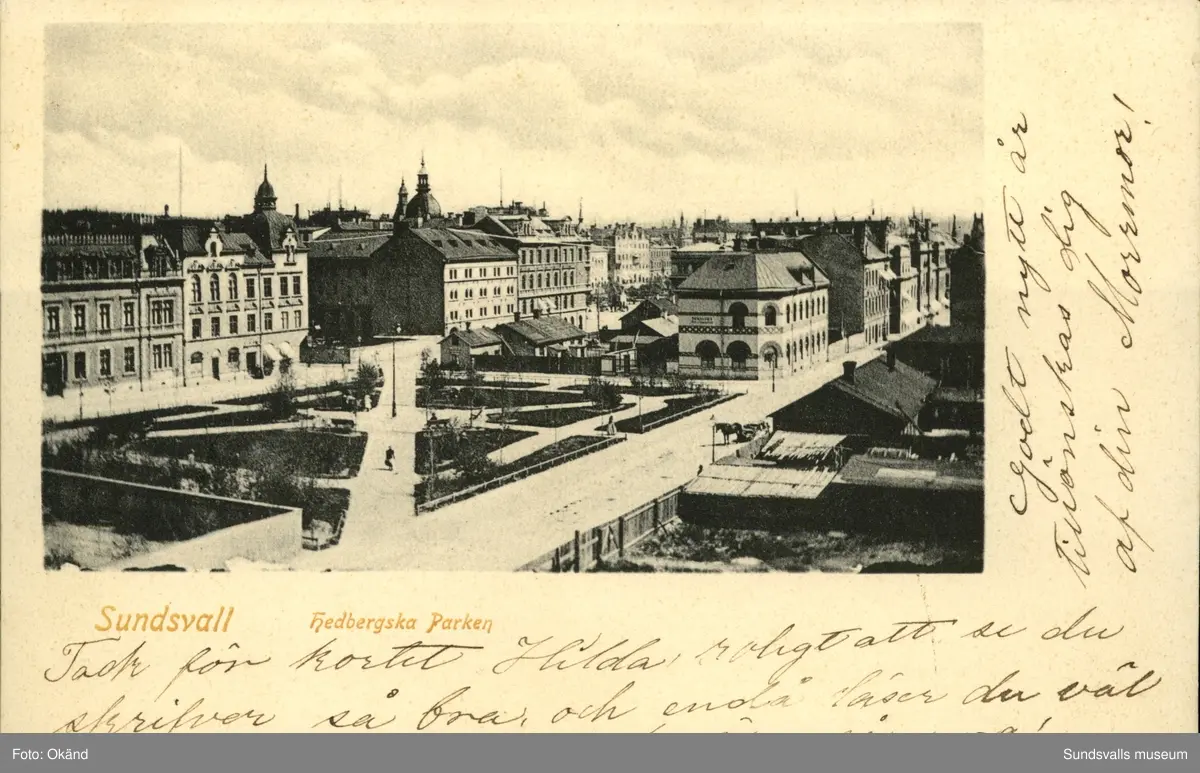 Vykort med motiv över Hedbergska Parken i Sundsvall.