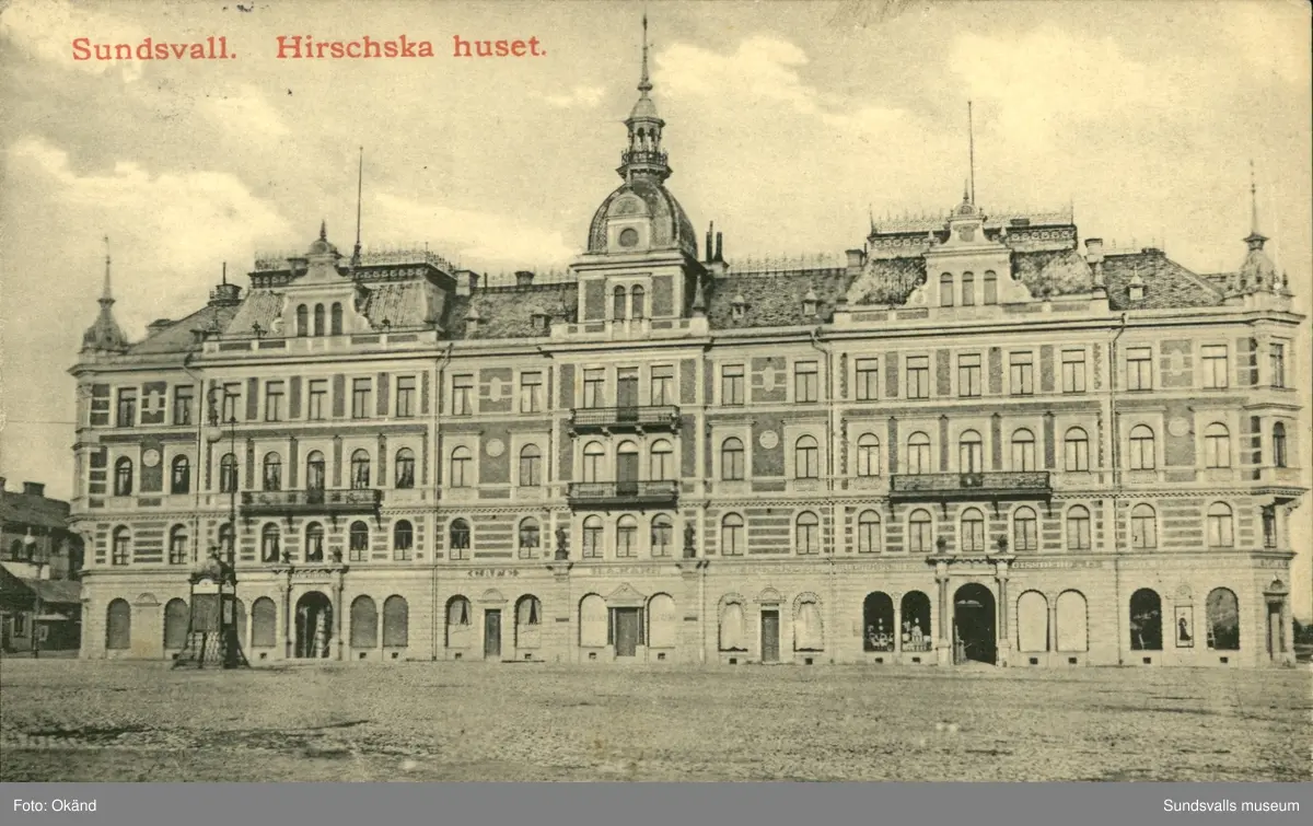 Vykort med motiv över Hirschskahuset i Sundsvall.