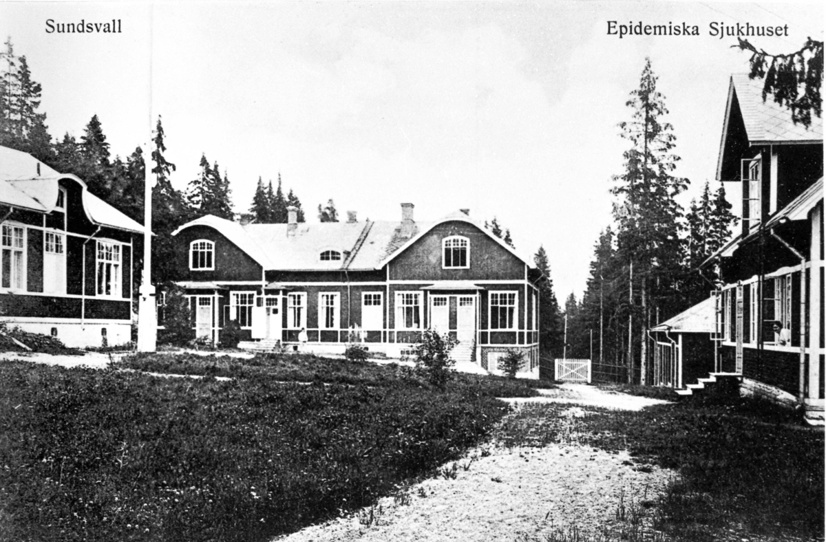 Epidemisjukhuset från 1909 efter Ludvigsbergsvägen (tidigare Epidemivägen). 1929 tillkom även ett stenhus på samma fastighet. Byggnaderna stod kvar ända in på 1970-talet.