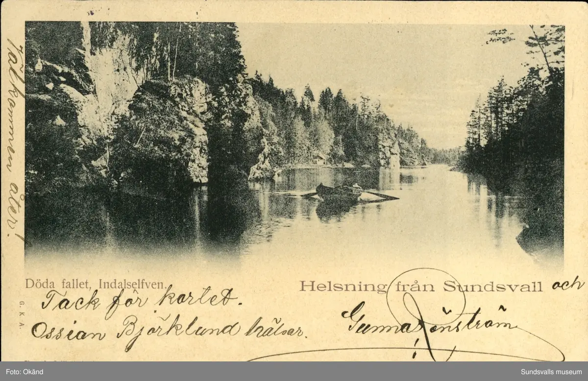 Vykort med motiv över Döda fallet vid Indalsälven.