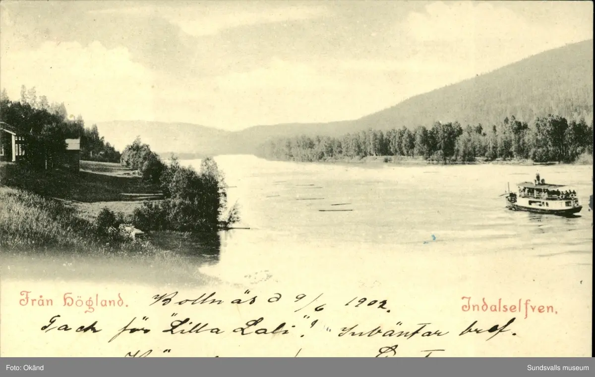 Vykort med motiv över Högland vid Indalsälven.