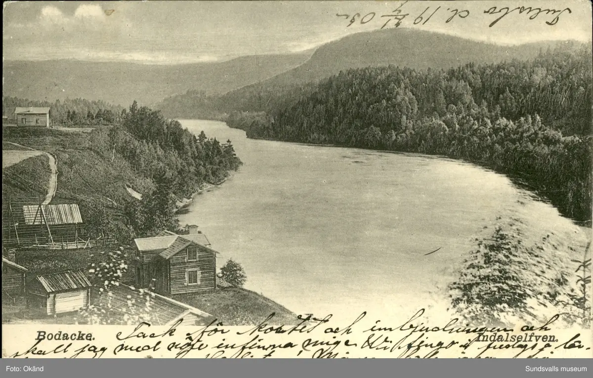 Vykort med motiv över Indalsälven vid Bodacke.