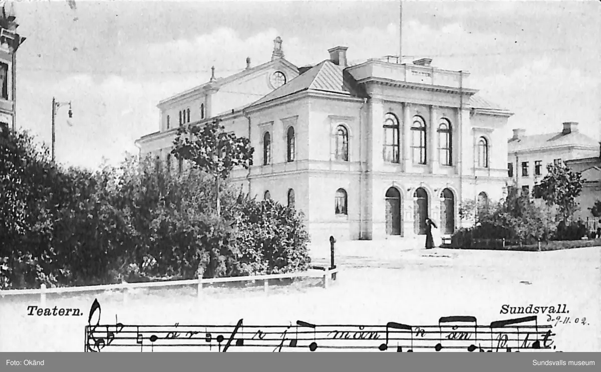 Vykort med motiv över Teatern i Sundsvall.