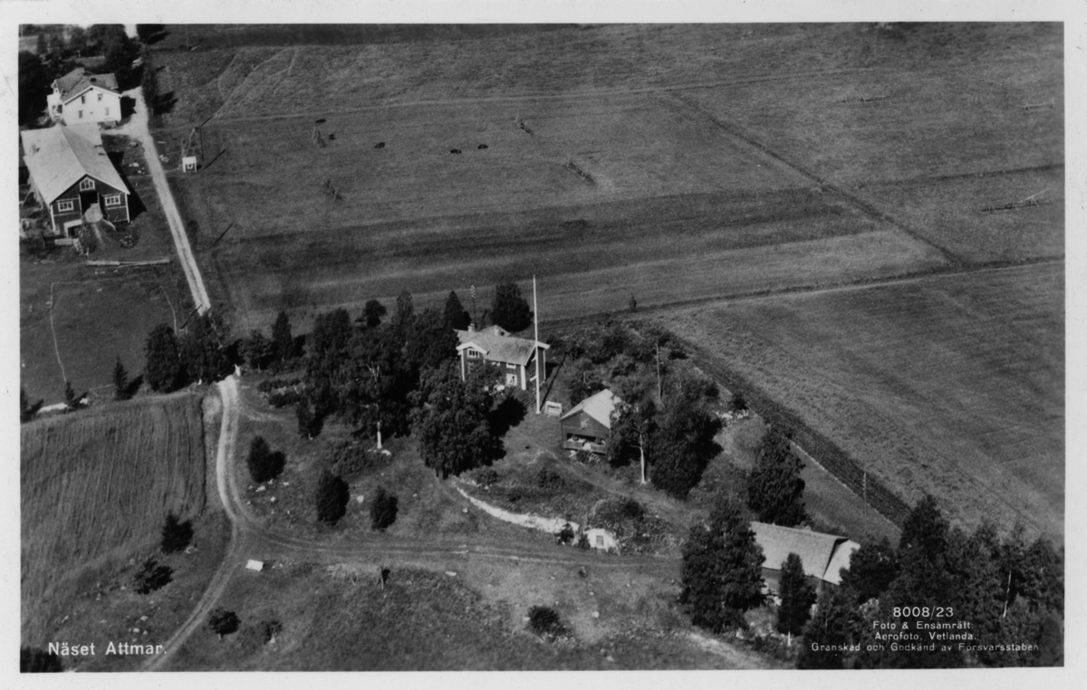 Flygbild över gårdar i byn Näset, Sörfors. Vykort.