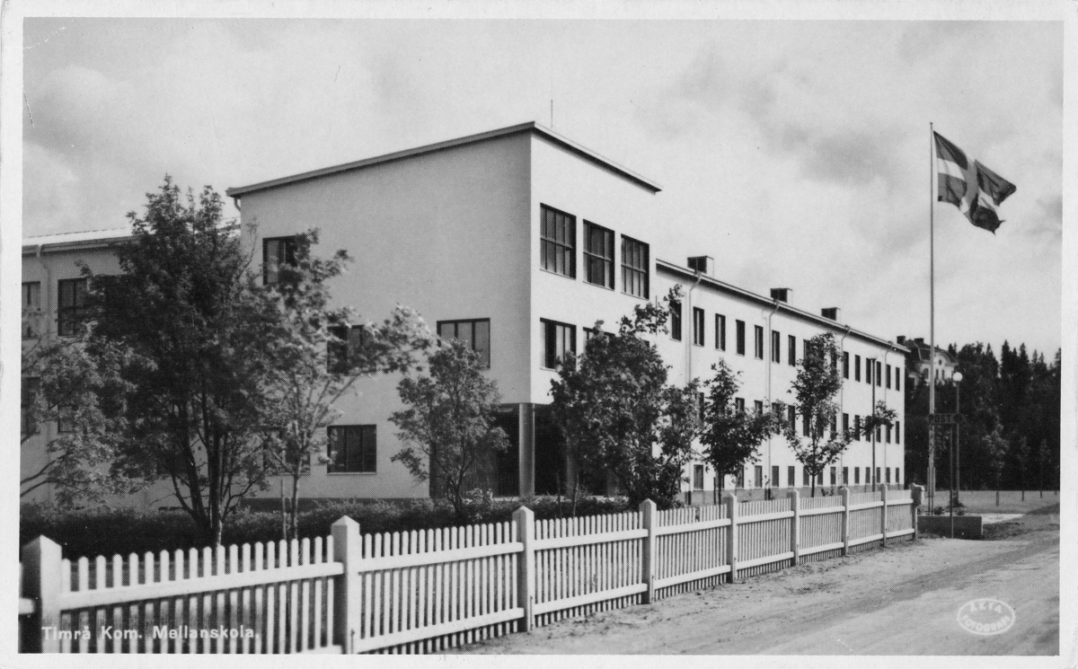 Mariedalsskolan. Vivsta. Vykort. Rastrerad bild. Text: " Timrå kommunala mellanskola".
